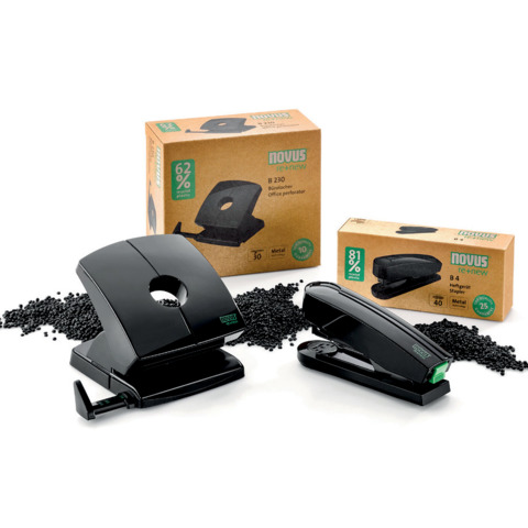 Locher NOVUS B 230 re+new Tischlocher. Werkstoff: Metall / Kunststoff aus nachhaltigem Rezyklat (62%). Lochung: 80 mm. Ausführung: 2 Stanzsegmente. Anschlagschiene vorhanden, Kunststoff. max. Einstell-Format: DIN A4. 4-fach Lochung möglich. Vollmetallgerät. Stanzleistung: 3 mm/30 Blatt. Zertifikate und Zulassungen: GS-Prüfzeichen. Garantie gewährt. Garantiedauer: 10 Jahre