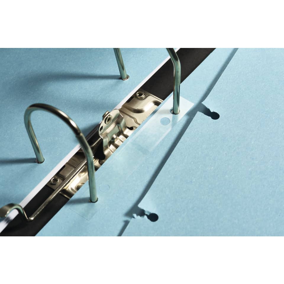 VELOFIX® Lochverstärker (DBP). Selbstklebend. Werkstoff: Harfolie. Lochung: 60 + 80 mm. Größe (B x H): 105 x 15 mm. Farbe: glasklar. Art der Verpackung und Inhalt: Packung mit 50 Stück.