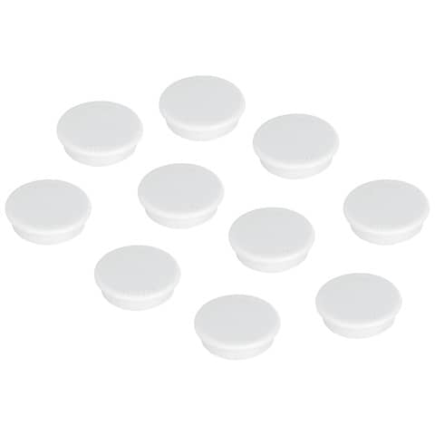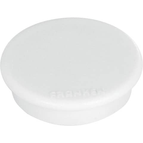 Franken Magnet. Rund. Hält bis zu 1 Blatt Papier (80 g/qm DIN A4). Zum Anheften von Notizen und Aushängen. Lackierte Unterseite zum Schutz der magnethaftenden Oberfläche. Mit Kunststoffkappe. Haftkraft: 100 g. Durchmesser: 13 mm. Inhalt: 10 Stück. Farbe: weiß.