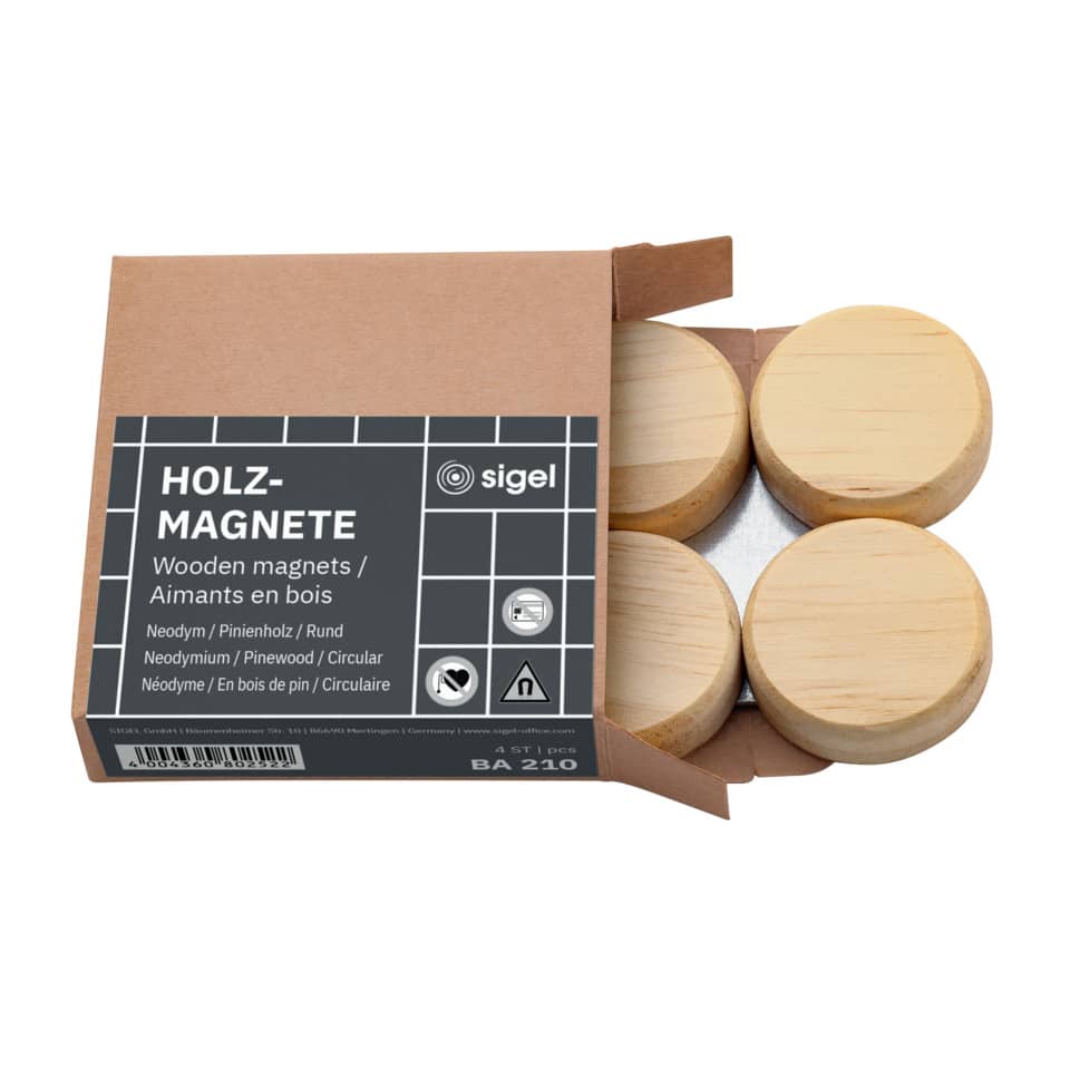 Eigenschaften "Magnet, rund, Pinienholz, Ø33mm, 4 Stück SIGEL BA210"