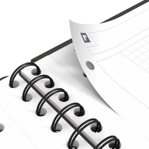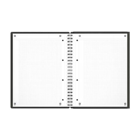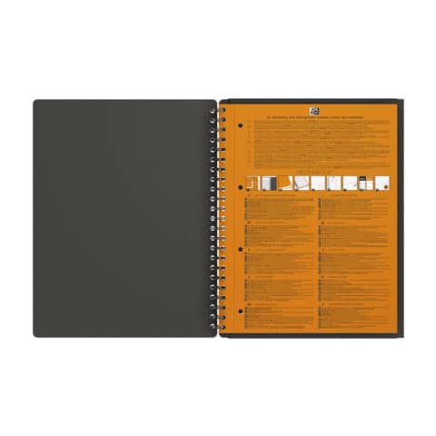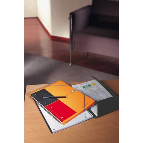 A4+ Meetingbook, 5 mm kariert mit Rand, perforierte und 4-fach gelochte Blätter, 80 Blatt. Extra-weißes und seidenglattes OPTIK PAPER® ermöglicht das Schreiben auf beiden Seiten eines Blattes ohne dass die Tinte auf der Rückseite durchscheint. Spezielle Lineatur mit Kopfzeile für Meetingtitel, Thema und Datum und Doppelrand, um Stichpunkte zu numerieren oder hervorzuheben. Die robuste, schwarze Doppelspiralbindung sorgt für Langlebigkeit, während das Meetingbook flach aufliegen oder vollständig umgeklappt werden kann - für maximalen Komfort und Flexibilität. Das wasserdichte und langlebige PP-Cover ist reißfest und hält stärksten Beanspruchungen stand. Kompatibel mit der SCRIBZEE® App um Notizen zu scannen, zu organisieren und zu teilen. Oxford´s exklusives OPTIK PAPER® hat sowohl das EU Ecolabel (geringe Umweltbelastung durch die Papierfabriken, die das Papier liefern) als auch die PEFC™ -Zertifizierung (nachhaltige Forstwirtschaft) erhalten. Das 2in1 (Collegeblock & Gummizugmappe) Meetingbook für eine perfekte Vorbereitung auf jedes Meeting. Der Gummizugverschluss sorgt für einen sicheren Transport der Dokumente und Utensilien. Die seitliche, lange Einschlagklappe der 3-Klappen-Gummizugmappe dient zusätzlich als Seitenmarkierung, um schnell die erste leere Seite zu finden. Die robuste Kartonunterlage ermöglicht sicheres und komfortables Schreiben.