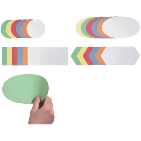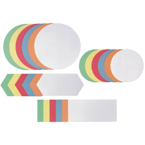 FRANKEN Moderationskarte Kreis klein. Selbstklebend. Durchmesser Ø 95 mm. Material: 100% Altpapier, 130 g/qm. Inhalt: 300 Stück. Farbe: sortiert: weiß, gelb, orange, rot, hellblau, hellgrün.