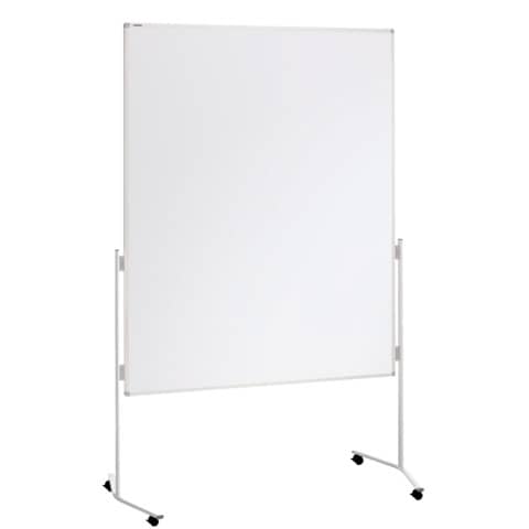 FRANKEN Moderationstafel ECO. Doppelseitig. Karton/Karton. Beidseitig verwendbar. 2 weiße Aluminium-Standbeine mit leicht gebogenen Füßen und 4 feststellbaren Lenkrollen. Mit Blitzverschluss für einfache und schnelle Montage. Oberfläche/Material: Karton. Rahmen: weißes Aluminium mit Kunststoffecken. Format Tafel: 1200 x 1500 mm. Format Gesamt: 1200 x 1950 x 585 mm. Farbe: weiß.