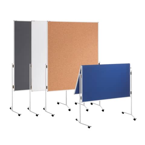 FRANKEN Moderationstafel ECO. Zusammenklappbar zur platzsparenden Lagerung bei Nichtgebrauch. Doppelseitig. Kork/Kork. Beidseitig verwendbar. 2 weiße Aluminium-Standbeine mit leicht gebogenen Füßen und 4 feststellbaren Lenkrollen. Mit Blitzverschluss für einfache und schnelle Montage. Oberfläche/Material: Kork. Rahmen: weißes Aluminium mit Kunststoffecken. Format Tafel: 1200 x (2x) 750 mm. Format Gesamt: 1200 x 1950 x 585 mm. Farbe: kork.