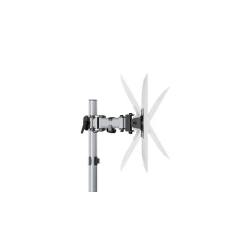 Monitor Halterung SELECT. Für 2 Monitore. Anzahl der Gelenke: je 3. Ergonomisches Arbeiten durch individuelle und leichtgängige Einstellung von Höhe, Neigung und Positionierung der Monitore. Höhe min./max.: 175/450 mm. Ausladung: 530 mm. Max. Schwenkbereich: 180 °. Abmessung der Stellfläche: niverselle VESA-Halterung (75 x 75 mm oder 100 x 100 mm). Max. Schwenkbereich der Tragplatte: 360 °. Neigbare Tragplatte vorhanden. Werkstoff: Aluminium. Farbe: silber. Tragfähigkeit: je 8 kg. Befestigungsart/Montage: Tischklemme.