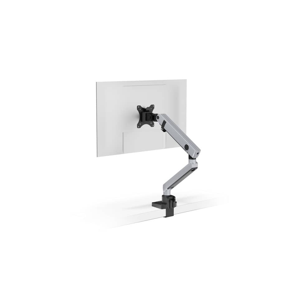 Monitor Halterung SELECT PLUS. Für einen Monitor. Anzahl der Gelenke: 5. Ergonomisches Arbeiten durch individuelle und leichtgängige Einstellung von Höhe, Neigung und Ausrichtung des Monitors. Höhe min./max.: 175/450 mm. Ausladung: 530 mm. Max. Schwenkbereich: 90 °. Abmessung der Stellfläche: niverselle VESA-Halterung (75 x 75 mm oder 100 x 100 mm). Max. Schwenkbereich der Tragplatte: 90 °. Neigbare Tragplatte vorhanden. Werkstoff: Aluminium. Farbe: silber. Tragfähigkeit: 8 kg. Befestigungsart/Montage: Tischklemme.