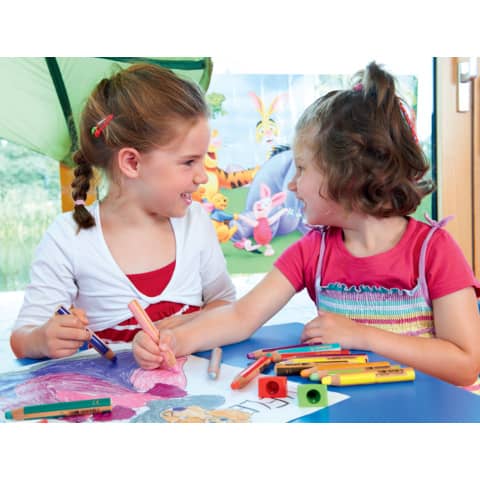 STABILO® woody 3 in 1. Multitalent-Stift für Kinder ab 3 Jahren, die viel und flächig malen und Hobbykünstler mit hohen Ansprüchen. Das außergewöhnliche Multitalent: Buntstift, Wassermalfarbe und Wachsmalkreide in einem. XXL-Mine: 1 STABILO woody = 8 Standard-Buntstifte. Perfekt für große Flächen und fast alle Maltechniken. Wegen seiner dicken Form ideal für Kinderhände: der Stift ist gut zu greifen. Bruchsichere Mine, Durchmesser 10 mm. Ergiebige Farben. Hohe Deckkraft und Farbintensität, auch auf dunklen Papieren. Satter, samtweicher Abstrich. Malt auch auf glatten Oberflächen wie Glas, Metall, Leder etc. Kartonetui mit 10 Stiften und 1 Spitzer.