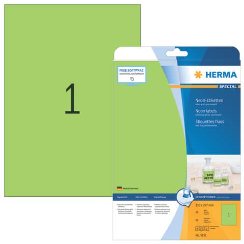 Eigenschaften "Neonetiketten permanent, 210x297mm, 20 Stück, leuchtgrün HERMA 5151"
