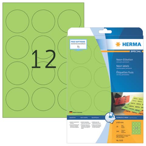 Eigenschaften "Neonetiketten permanent, Ø60mm, 240 Stück leuchtgrün HERMA 5155"