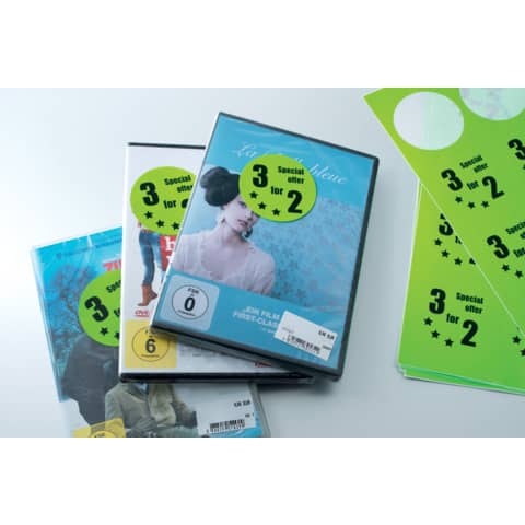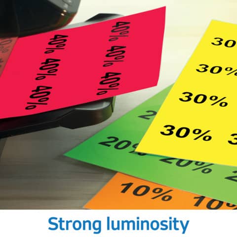 Etiketten in Neonfarben für Informationen mit Signalwirkung, auf A4-Blättern, selbstklebend. Auffallend und informativ: ideal für Kennzeichnungen mit Signalcharakter, z. B. Warnhinweise, Eilvermerke, Aktionen, Farbcodierungen,... In 4 signalstarken Neonfarben, FSC® Mix Credit-zertifiziert. Für Laser- und Inkjetdrucker, Kopierer, Farblaserdrucker und Farbkopierer geeignet. Störungsfreie Verarbeitung durch Rundum-Sicherheitskante und optimale Planlage.