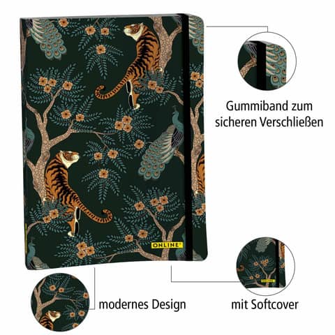 Eigenschaften "Notizbuch Bullet Journal Tiger, A5, 120g/m², dotted ONLINE 18020"