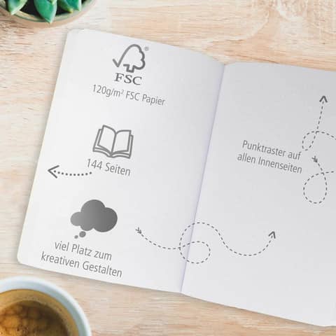 72 Blatt, dotted, 120gr. Papier, flexibler Einband,