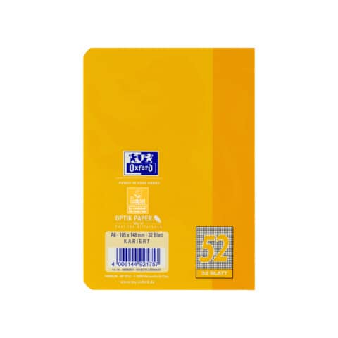 Eigenschaften "Oktavheft, A6, 90g/m², 32 Blatt, Lin.52, kariert, sortiert OXFORD 100050397"
