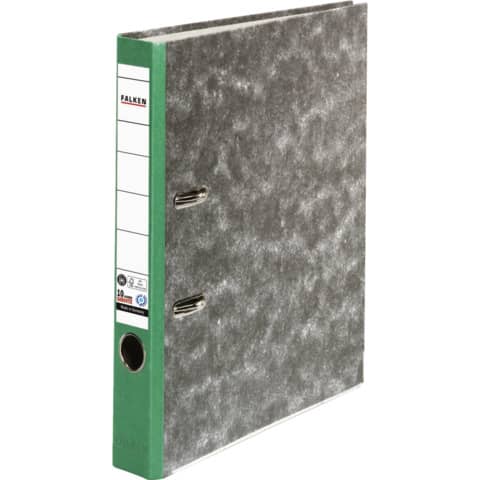 Eigenschaften "Ordner Wolkenmarmor Recycling, A4, 50mm, schwarz/grün FALKEN 80023500"
