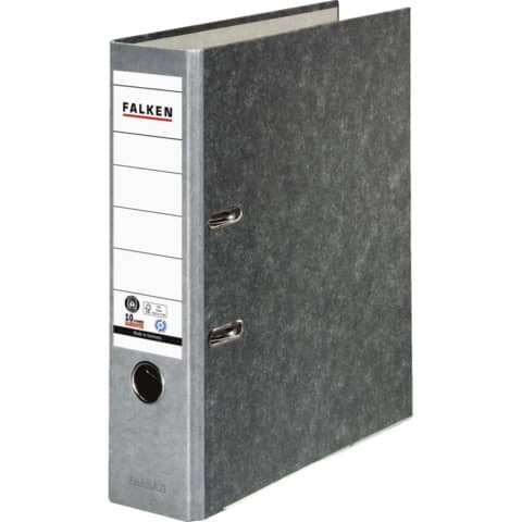Falken - Recycling-Wolkenmarmor-Ordner A4, farbiger Rücken 80mm Schlitzordner im klassischen Wolkenmarmor-Design mit schwarzem oder farbigem Rücken, stabiler Pappkern, griffig genarbter Papierbezug, mit verstärkter Qualitätshebelmechanik, Kantenschutz, FSC zertifiziert Die Recycling Schlitzordner im klassischen Wolkenmarmor-Design sind perfekt für alle umweltbewussten Menschen die Wert auf eine hohe Qualität legen. Sie sind sowohl einzeln als auch im praktischen 10er oder 20er Pack, in unterschiedlichen Rückenfarben erhältlich. Sie sind äußerst stabil und standfest durch einen stabilen Pappkern und sind mit einem Kantenschutz ausgestattet. Unsere Recycling Ordner besitzen sowohl die bewährte, verstärkte Qualitätshebelmechanik als auch ein bereits aufgeklebtes Rückenschild. Ein Griffloch ermöglicht Ihnen den schnellen Zugriff auf den Ordner. Alle Recycling Ordner werden aus umweltfreundlichen Rohstoffen in Deutschland produziert und sind sowohl FSC als auch Blauer Engel zertifiziert.