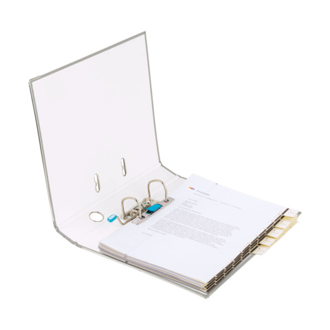 Formstabile Spezialpappe. Einband außen mit PP, innen mit Papier kaschiert. Sichttasche am Rücken mit auswechselbarem Rückenschild. Für ca. 280 DIN A4-Blätter. Ordner mit präzise schließender Hebelmechanik und Niederhalter. Mit Kantenschutz, Greifloch und rado-Ösen. Rückenbreite: 50 mm. Größe: 285 x 318 mm (B x H) für DIN A4. Ersatzrückenschild: 04 264. Beschriftungsmöglichkeit mit ELBA print.
