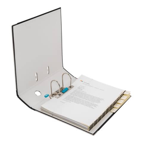 Einband außen mit PP, innen mit Papier kaschiert. Sichttasche am Rücken mit auswechselbarem Rückenschild. Formstabile Spezialpappe. Für ca. 570 DIN A4-Blätter. Ersatzrückenschild: 04 268. Beschriftungsmöglichkeit mit ELBA print. Ordner mit präzise schließender Hebelmechanik und Niederhalter, Griffloch, rado-Ösen und Kantenschutz. Für DIN A4. Größe: 285 x 318 mm (B x H). Rückenbreite: 80 mm. Umweltzeichen Paper By Nature.