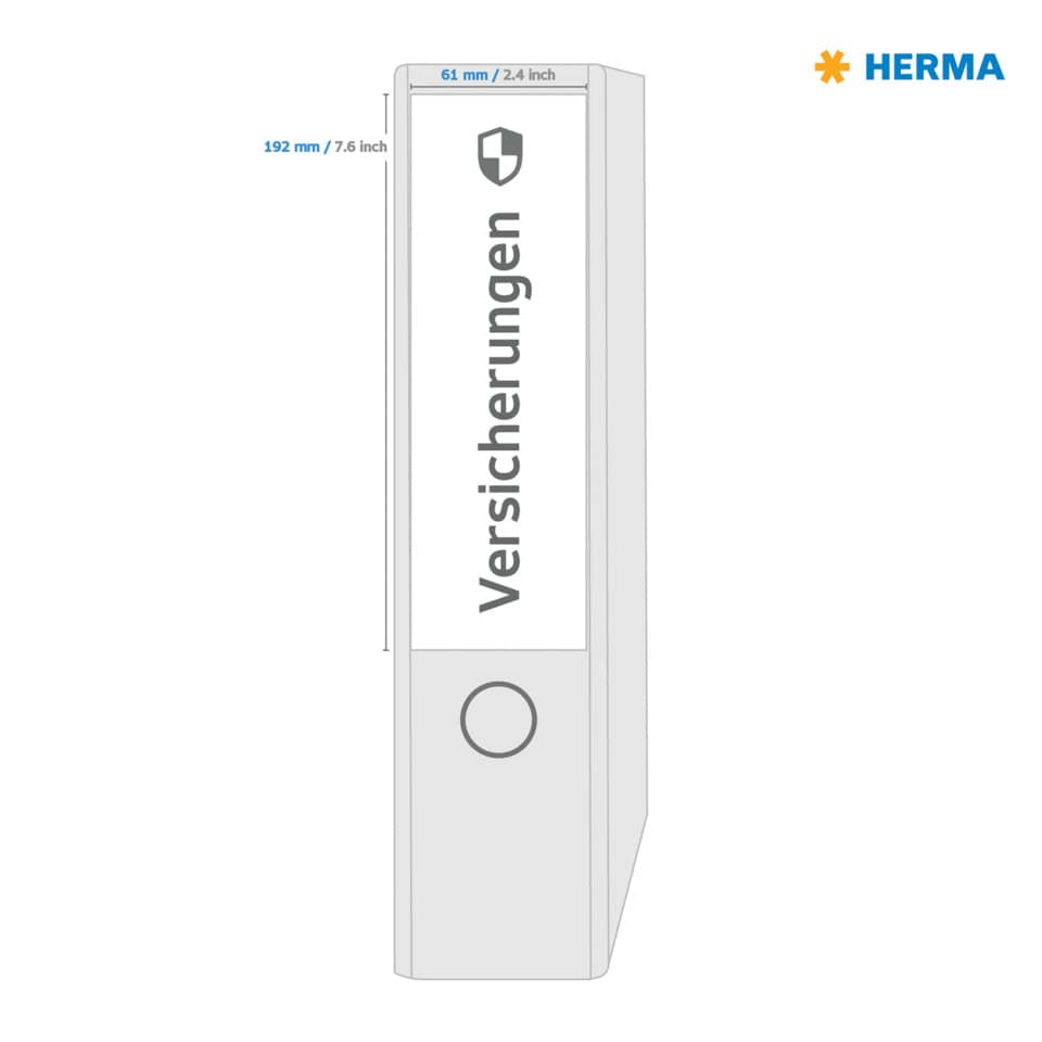 Eigenschaften "Ordnerrückenschild ablösbar, 61 x 192 mm, breit/kurz, 100 Stück, weiß HERMA 10165"