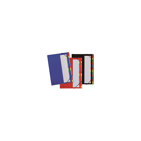 Deskorganizer, mit Eckspanngummi, dehnbarem Rücken, farbigem Griffregister, mit Polyesterfolie verstärkt, eingelegte farbige Kartoneinlage zur Beschriftung + blanko Ersatzeinlage zur individuellen Bedruckung über den PC.