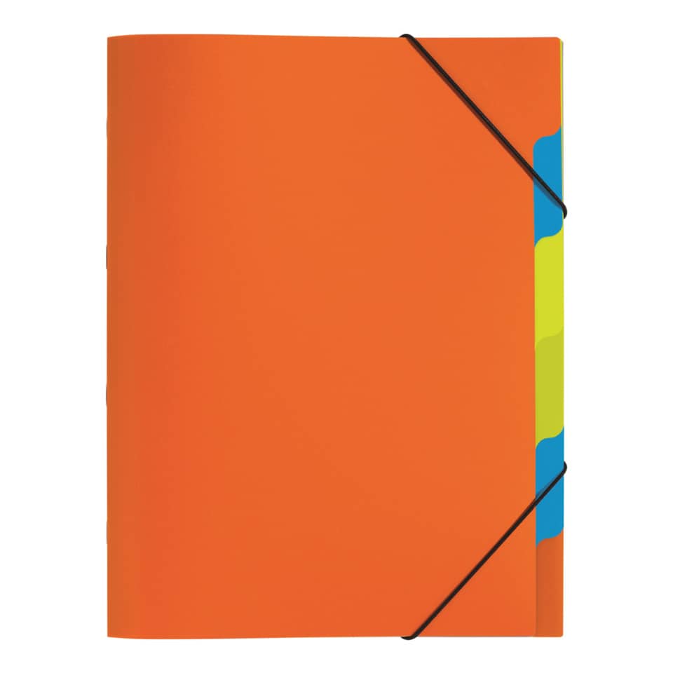 Funky School Ordnungsmappe für Dokumente im Format A4. 5 Fächer. Mit Umschlag aus langlebigem PP in modernen Farben. Schwarzes Eckspanngummi. Buntem Register aus stabilem PP für schnellen Zugriff auf Unterlagen.