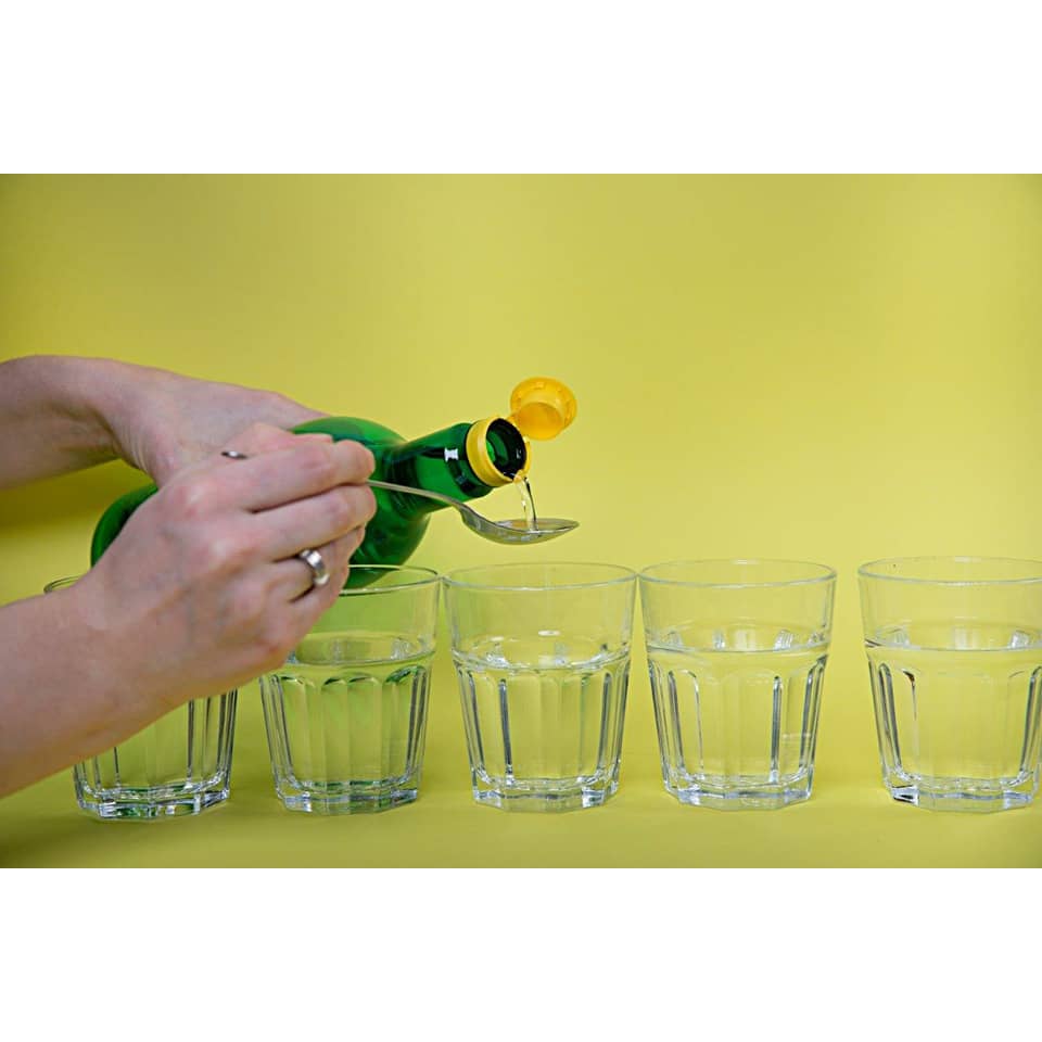 Die Packung enthält fünf Färbetabletten in Rot, Orange, Grün, Blau und Gelb.