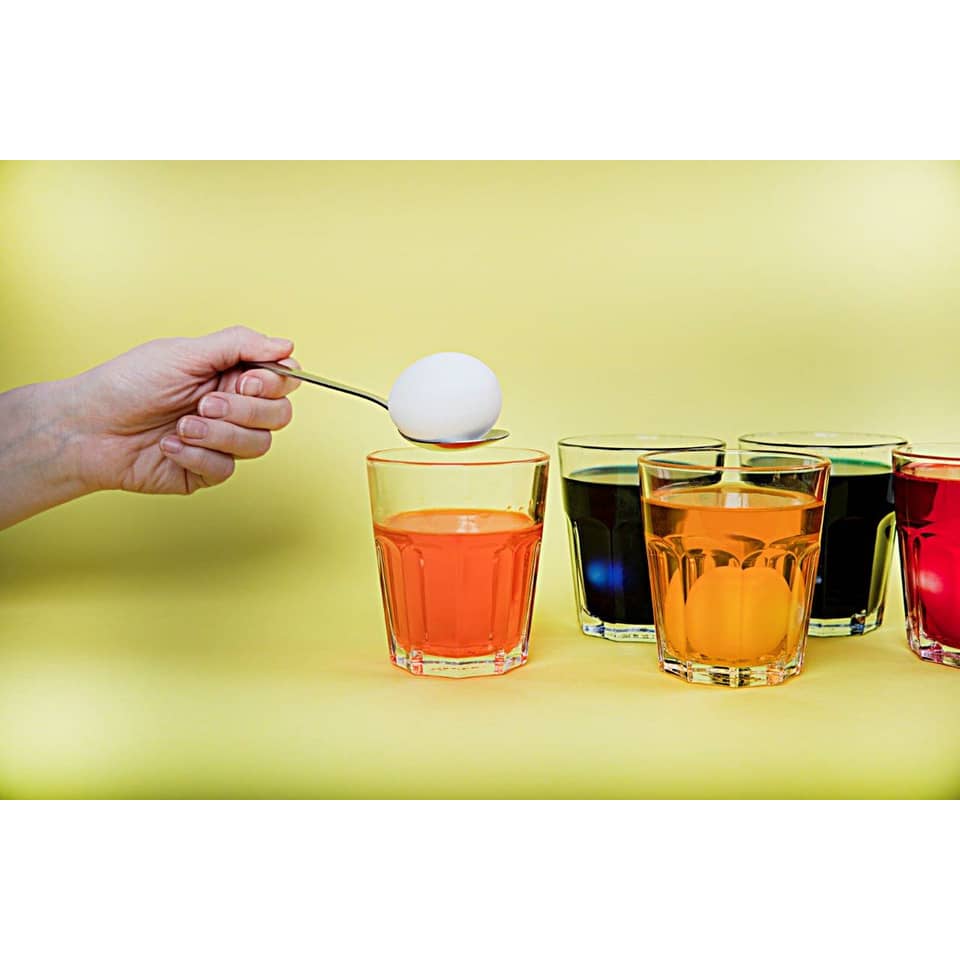Es ist jedes Jahr ein beliebtes Ritual: das Ostereier-Färben für die ganze Familie. Zuerst öffnet man die nostalgische Verpackung. Dann wird die Folienverpackung der Färbetabletten geöffnet und vorsichtig Tablette für Tablette in die vorbereiteten Gläser gedrückt. Jeder aus der Familie kann dabei mithelfen. Unter Geschwistern ist das Vorbereiten der Färbetabletten ebenso beliebt wie das Halten des Esslöffels, mit dem der Essig abgemessen wird. Und schon richtig groß ist, wer zum ersten Mal unter Anleitung das heiße Wasser in die Gläser füllen darf!