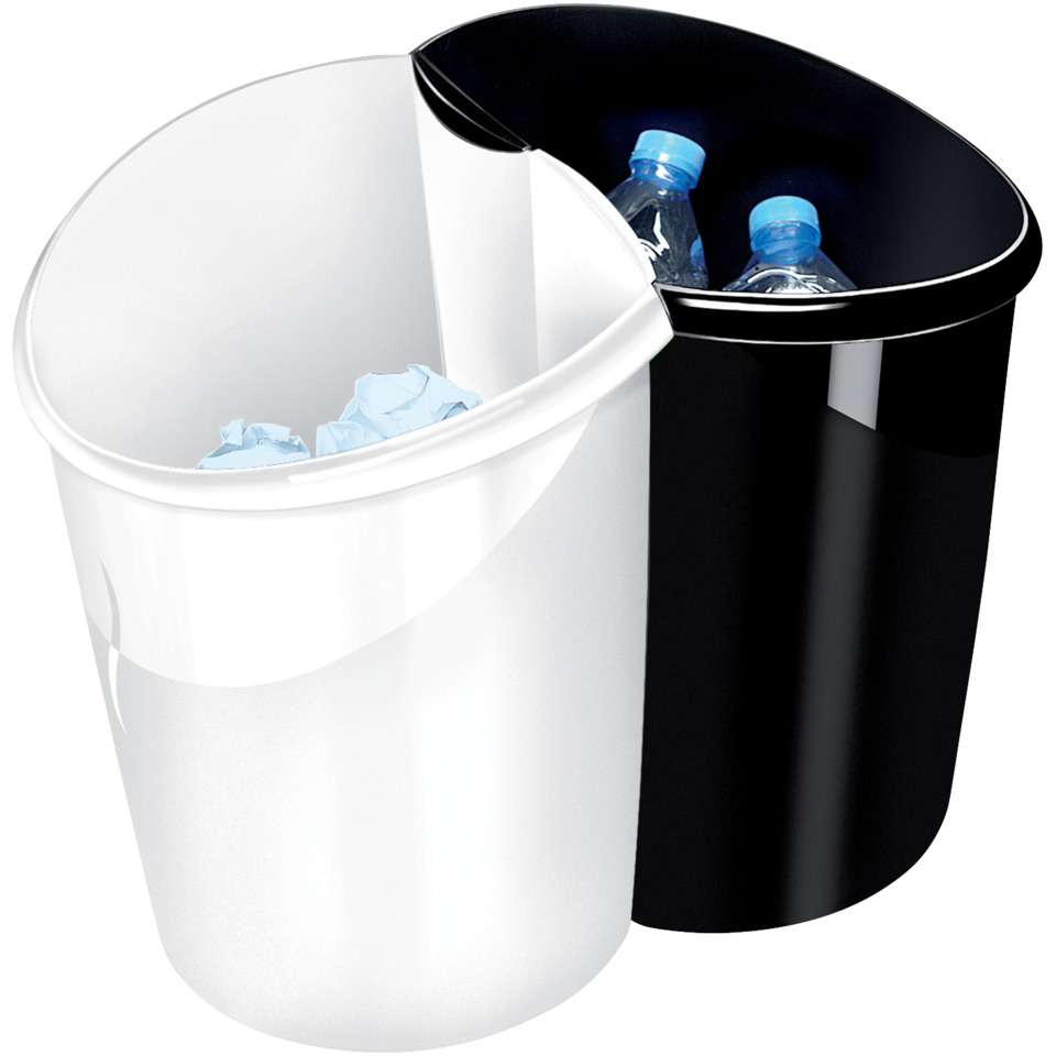 Eleganter Papierkorb in innovativem Design. Matte und glänzende Oberflächenbeschichtung. Geschwungener Rand und Halbmond-Form für komfortables Mülleinwerfen. Leichte Handhabung durch einen breiten, umlaufenden Griffrand. 2 Papierkörbe können zur Mülltrennung kombiniert werden. Schwarzer Papierkorb mit Blauer Engel ausgezeichnet. Fassungsvermögen : 15 Liter.