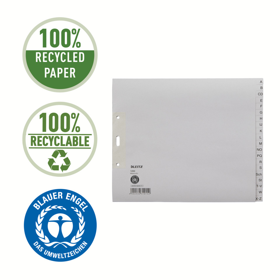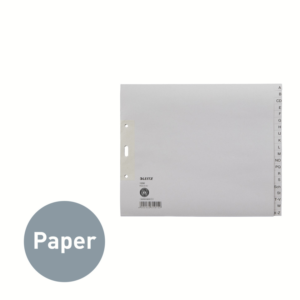 Eigenschaften "Papierregister A-Z, A4, Papier, 20 Blatt, grau LEITZ 1200-00-85"