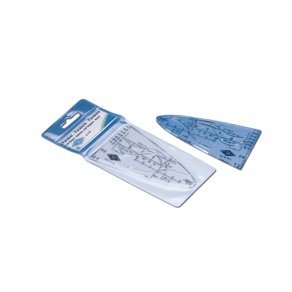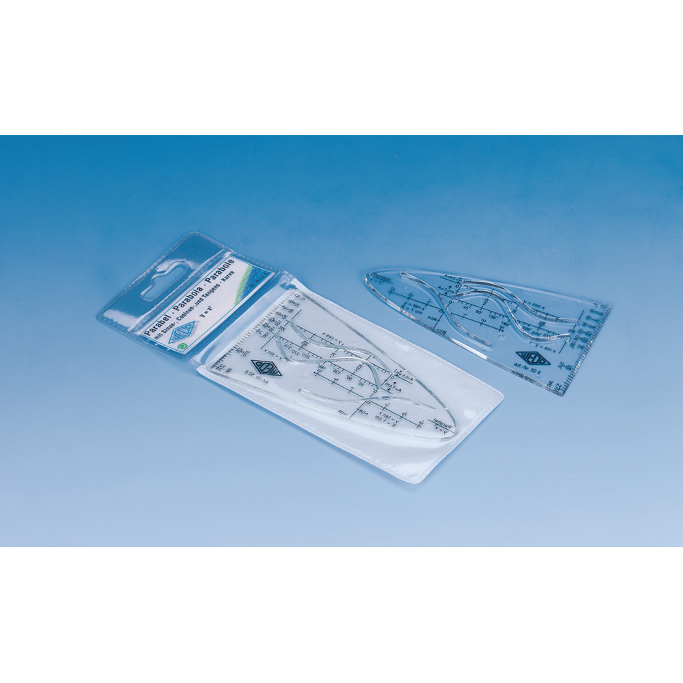 WEDO Parabel, Einheitsparabel (y=x²). Aus bruchfestem, transparentem Polystyrol, mit Tuschekanten an den Außenkonturen. Mit 3 Kurven, für Schule und Ausbildung. Verpackt im Etui.