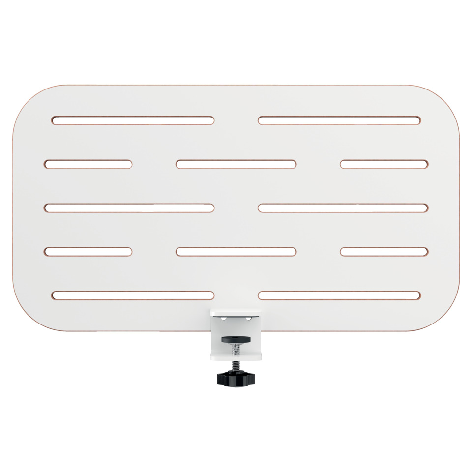 Leitz Pegboard-Schreibtisch-Organizer Ergo Klein. Vertikaler Schreibtisch-Organizer mit einzigartigen, breiten Aufhängeschlitzen zur Aufbewahrung aller wichtigen Dinge des täglichen Bedarfs und für mehr Platz auf dem Schreibtisch. Ideal für Home-Office und Büro. Die kompakte Lochtafel-Aufbewahrungslösung kann auf den Schreibtisch montiert oder darunter gehängt werden. Mit abgerundeten Ecken. Langlebig, stark und stabil. Inklusive drei Zubehör-Elemente aus 85 % aus recyceltem Kunststoff: 1 x Notizblockhalter, 1 x Stifthalter und 1 x Aufhängehaken für ein Headset. Für eine Tischplattendicke von maximal 35 mm. Abmessung Pegboard: 42 x 25 cm (ohne Befestigungsklammern). Mit weichen Gummipolstern um den Schreibtisch vor Kratzern zu schützen. Einfache Montage der Klemmhalterung durch mitgelieferten Inbusschlüssel (kein Bohren erforderlich). Pegboard Lochwand als wertvolle Ergänzung zu unseren höhenverstellbaren Sitz-Steh-Schreibtischen (65340001 oder 65360001), größeres Pegboard mit Laptophalter ebenfalls erhältlich (65490000). Premiumqualität, in Deutschland entwickelt. Vollständig recycelbare, plastikfreie Verpackung. Material: 8 mm starke MDF-Platte, Kunststoff zu 85 % recycelt. Gewicht: 0,5 kg. Format: 450 x 330 x 61. Farbe: weiß.