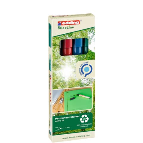 Eigenschaften "Permanentmarker e25 EcoLine, Rundspitze, nachfüllbar, 1mm, 4 Stück, sortiert EDDING 25/4"