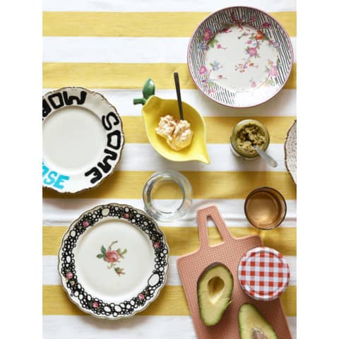 Fasermaler für spülmaschinenfestes Gestalten großer Flächen und feiner Details auf Porzellan, glasierter Keramik und ofenfestem Glas ohne Tropfenbildung oder Verlaufen. Die flexible Pinselspitze hat eine Strichbreite von 1-4 mm. Die Pigmenttinte auf Wasserbasis ist schnelltrocknend, vor dem Einbrennen korrigierbar und besonders lichtbeständig. Nach dem Einbrennen ist die Bemalung auf dem Porzellan spülmaschinenfest bis 50 °C. Vor dem Einbrennen die Bemalung 15 Minuten trocknen lassen, dann bei 160 °C 25 Minuten einbrennen und im Ofen abkühlen lassen.