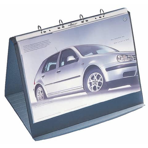 | Besonderheiten: | standfester Buchkörper, Kopfstabil durch Verstärkung der Folie an der Ringmechanik, Rücken mit Beschriftungsfeld, bei der Präsentation werden die Sichthüllen nach hinten geklappt |