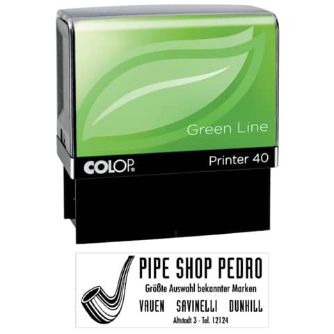 Selbstfärbestempel Printer 40Green Line mit Gutschein zur Anfertigung einer kostenlosen Textplatte, max. 6-zeiliger Text,