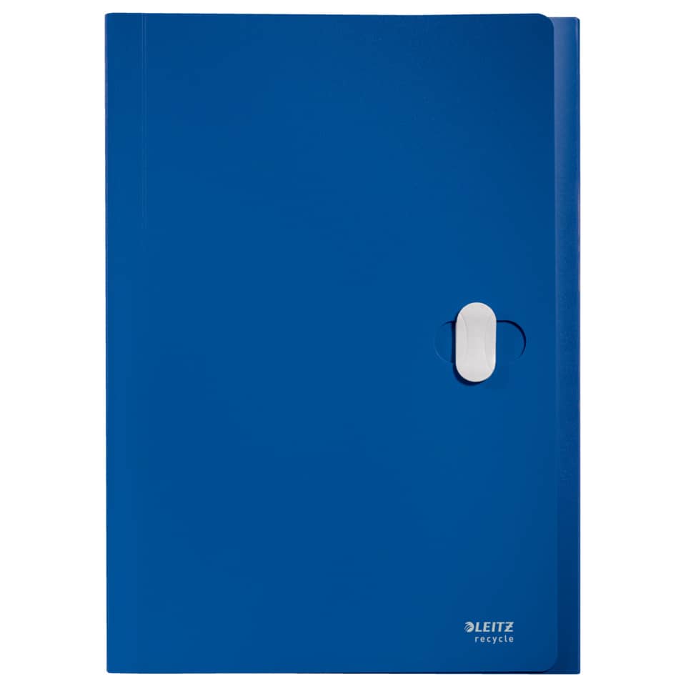 Leitz Projektmappe Recycle. Hergestellt aus 80% recyceltem Material und zu 100% recycelbar. Mit recycelbarem Sicherheitsverschluss. Für die Projektorganisation. Leicht, langlebig und wiederverwendbar. Blickdicht. 5 Fächer mit Beschriftungstaben und einem zusätzlichen Fach für die Aufbewahrung von Utensilien oder Notizbüchern. Kein Verpackungsabfall, Kennzeichnung nur mittels Etikett. Kapazität: bis zu 250 Blatt DIN A4 (80 gm). Material: 80% recyceltes Polypropylen (PP), Einband: 0,65 mm, Fächer: 0,18 mm. Format: für DIN A4, 330 x 240 x 41 mm. Farbe: blau.