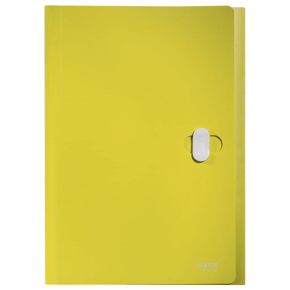 Leitz Projektmappe Recycle. Hergestellt aus 80% recyceltem Material und zu 100% recycelbar. Mit recycelbarem Sicherheitsverschluss. Für die Projektorganisation. Leicht, langlebig und wiederverwendbar. Blickdicht. 5 Fächer mit Beschriftungstaben und einem zusätzlichen Fach für die Aufbewahrung von Utensilien oder Notizbüchern. Kein Verpackungsabfall, Kennzeichnung nur mittels Etikett. Kapazität: bis zu 250 Blatt DIN A4 (80 gm). Material: 80% recyceltes Polypropylen (PP), Einband: 0,65 mm, Fächer: 0,18 mm. Format: für DIN A4, 330 x 240 x 41 mm. Farbe: gelb.