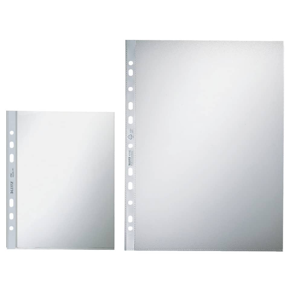 Leitz Prospekthülle Standard, oben offen, dokumentenecht, genarbt, mit Multilochung. Material: recycelbares Polypropylen (PP), 0,085 mm. Format: für A4. Farbe: farblos.