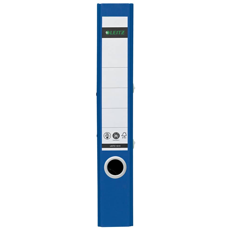 Leitz Qualitäts-Ordner Recycle 180°. Der Ordner ist zu 100% recycelbar und besteht zu 100% aus recyceltem Material. Der Ordner kann zerlegt und für das Recycling in seine Papier-, Kunststoff- und Metallbestandteile getrennt werden. Griffloch und Schlitze aus hellgrauem, recyceltem Karton. Mit selbstklebendem Rückenschild. Mit patentierter 180º-Präzisionsmechanik. 5 Jahre Garantie auf die Mechanik, GS-geprüft. 50% weitere Mechaniköffnung für schnelleres und komfortableres Arbeiten, Ablegen auch auf der linken Seite möglich. Für ca. 350 Blatt (80 g/qm). Kein Verpackungsabfall, Kennzeichnung nur mittels Etikett. Material: 100% recycelter Einband aus Graupappe (RC). Format: für DIN A4, 285 x 320 mm, Rückenbreite: 50 mm. FSC®-zertifiziert. Farbe: blau.