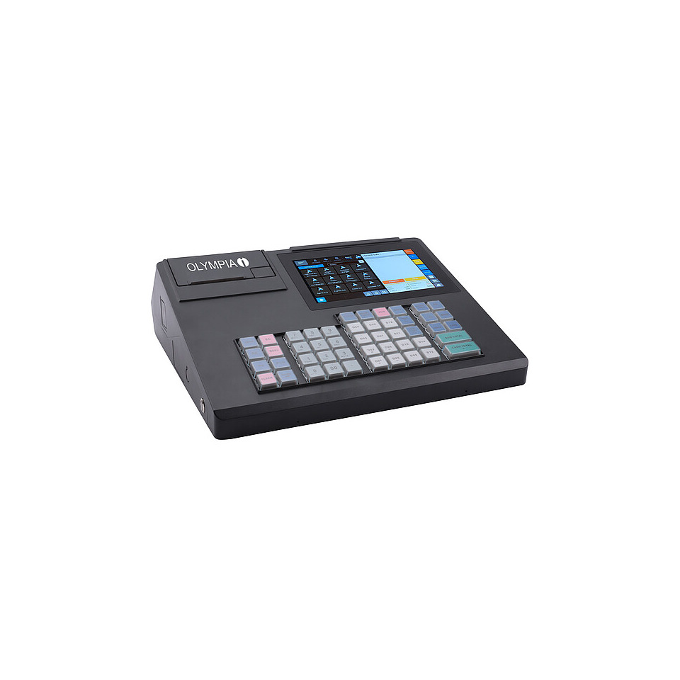 OLYMPIA elektronische Registrierkasse K200 für den Handel inkl. TSE-Lizenz für 3 Jahre. Hubtastatur mit 48 Tasten, 58 mm Thermodrucker, Bedieneranzeige: 7 Zoll Touch Display, einzeilige LED-Kundenanzeige, 100 Warengruppen und 10.000 PLU, 50 Bediener, grafisches Bonlogo. Schnittstellen: 1x LAN, 4x USB-A, 1x seriell, 1x Kassenladen-Port. Betriebssystem Android 11. Programmierung erfolgt direkt an der Kasse ohne PC-Programm (USB-Maus notwendig; nicht im Lieferumfang). Cloudanbindung zur Datensicherung und Berichtswesen 6 Monate inklusive, danach optional (zusätzliche monatliche Kosten). Kassenlade optional erhältlich (nicht im Lieferumfang).