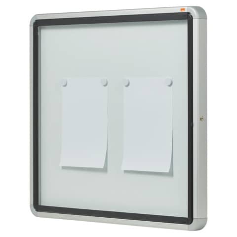 Nobo Schaukasten Premium Plus. Für den Außenbereich. Für 6 x DIN A4. Magnetisch. Mit abschließbarer Klapptür aus Sicherheitsglas. Wetterfest, mit speziellen Dichtungen (IEC 60529). Mit magnetischer Metallrückwand. Für die Verwendung von Magneten und trocken abwischbaren Markern. Mit Sicherheitsschloß an der Seite. Nutzbare Tiefe: 16 mm. Lieferung inklusive Wandbefestigung und 2 Schlüsseln. Material Rahmen: Aluminium. Material Tür: Sicherheitsglas, 4 mm. Format: 708 x 667 x 43 mm. 10 Jahre Garantie. Farbe: weiß.