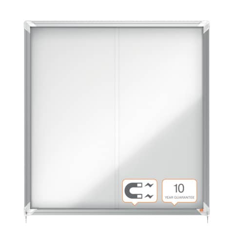 Nobo Schaukasten Premium Plus. Für den Innenbereich. Für 12 x DIN A4. Magnetisch. Mit platzsparenden, abschließbaren Schiebetüren aus Sicherheitsglas. Mit magnetischer Metallrückwand. Für die Verwendung von Magneten und trocken abwischbaren Markern. Mit 2 Sicherheitsschlössern. Nutzbare Tiefe: 16 mm. Lieferung inklusive Wandbefestigung und 2 Schlüsseln. Material Rahmen: Aluminium. Material Tür: Sicherheitsglas, 4 mm. Format: 922 x 967 x 63 mm. 10 Jahre Garantie. Farbe: weiß.
