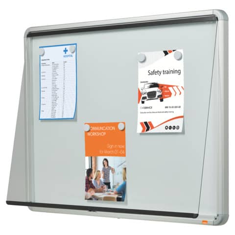 Nobo Schaukasten Premium Plus. Für den Innenbereich. Für 9 x DIN A4. Magnetisch. Mit abschließbarer Klapptür aus Sicherheitsglas. Mit magnetischer Metallrückwand. Für die Verwendung von Magneten und trocken abwischbaren Markern. Mit Sicherheitsschloß an der Seite. Nutzbare Tiefe: 16 mm. Lieferung inklusive Wandbefestigung und 2 Schlüsseln. Material Rahmen: Aluminium. Material Tür: Sicherheitsglas, 4 mm. Format: 708 x 969 x 43 mm. 10 Jahre Garantie. Farbe: weiß.
