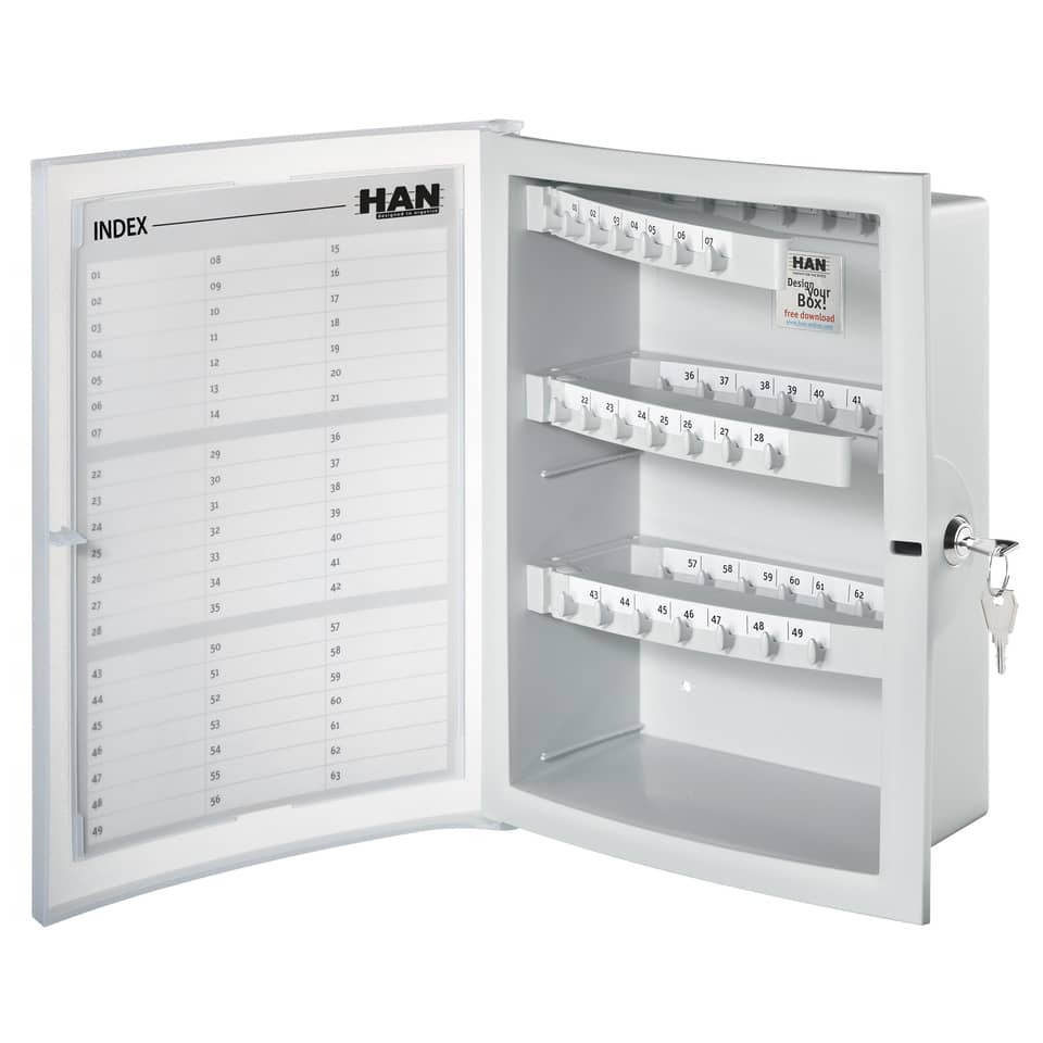 Produktinformationen "Schlüsselkasten INDEX für 63 Schlüssel, abschließbar, lichtgrau HAN 4023-11"