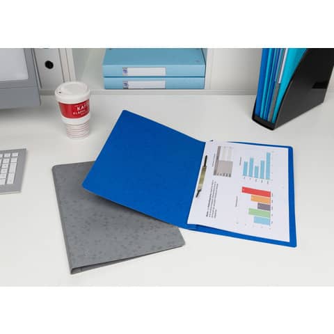 Der Oxford Schnellhefter TOP FILE+ in A4 ist aus 390 g/qm Karton und bietet dank der neuen Multi’Strat Technologie eine einzigartige Strapazierfähigkeit. Das neue Design ist modern und erfrischend und die große Farbvielfalt erleichtert die Organisation. Das aufgedruckte Beschriftungsfeld auf Vorder- und Rückseite ermöglicht die kaufmännische Heftung und die Amtsheftung. Die Kapazität ist ausreichend für ca. 200 DIN A4-Blätter. Abheftmechanik aus Metall mit robuster Metalldeckleiste. Die Farbe ist blau.