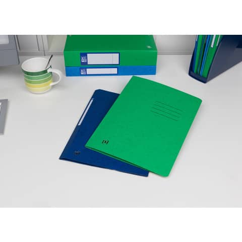 Der Oxford Schnellhefter TOP FILE+ in A4 ist aus 390 g/qm Karton und bietet dank der neuen Multi’Strat Technologie eine einzigartige Strapazierfähigkeit. Das neue Design ist modern und erfrischend und die große Farbvielfalt erleichtert die Organisation. Das aufgedruckte Beschriftungsfeld auf Vorder- und Rückseite ermöglicht die kaufmännische Heftung und die Amtsheftung. Die Kapazität ist ausreichend für ca. 200 DIN A4-Blätter. Abheftmechanik aus Metall mit robuster Metalldeckleiste. Die Farbe ist grün.