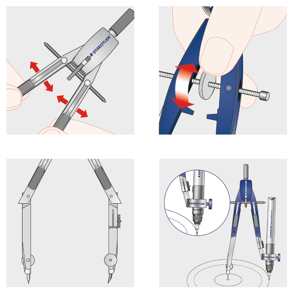 Eigenschaften "Schnellverstellzirkel, 360 mm, 146 mm, silber/blau STAEDTLER 553 01"