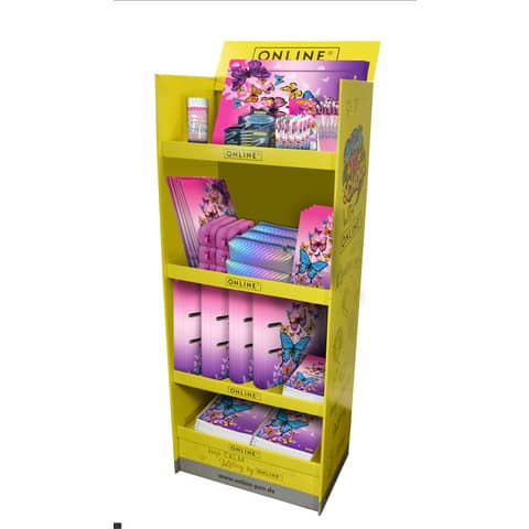 verschiedene Artikel der Serie Butterfly im Bodendisplay sortiert