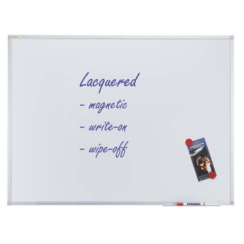 FRANKEN Whiteboard X-tra!Line Stahl. Magnethaftend, beschriftbar. Zur Verwendung im Hoch- oder Querformat. Mit Ablageschale. Trocken abwischbar. Lieferung inklusive Montagematerial. Wandbefestigung: Spiegelaufhängung oder durch die Ecken. Oberfläche/Material: lackierter Stahl. Rahmen: silber eloxiertes Aluminium mit hellgrauen Kunststoffecken. Format: 600 x 450 mm. Farbe: weiß.