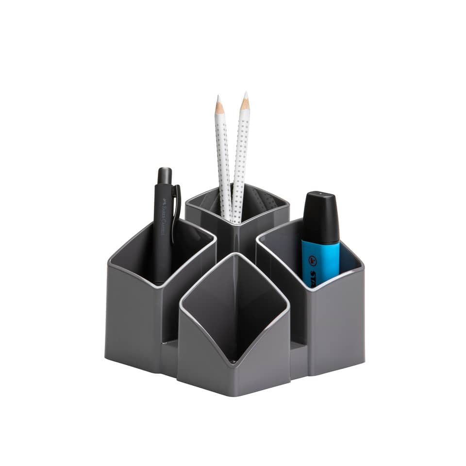Eigenschaften "Schreibtischköcher SCALA, mit 4 Fächern und Kartenständer, dunkelgrau HAN 17450-191"