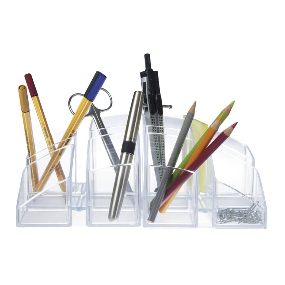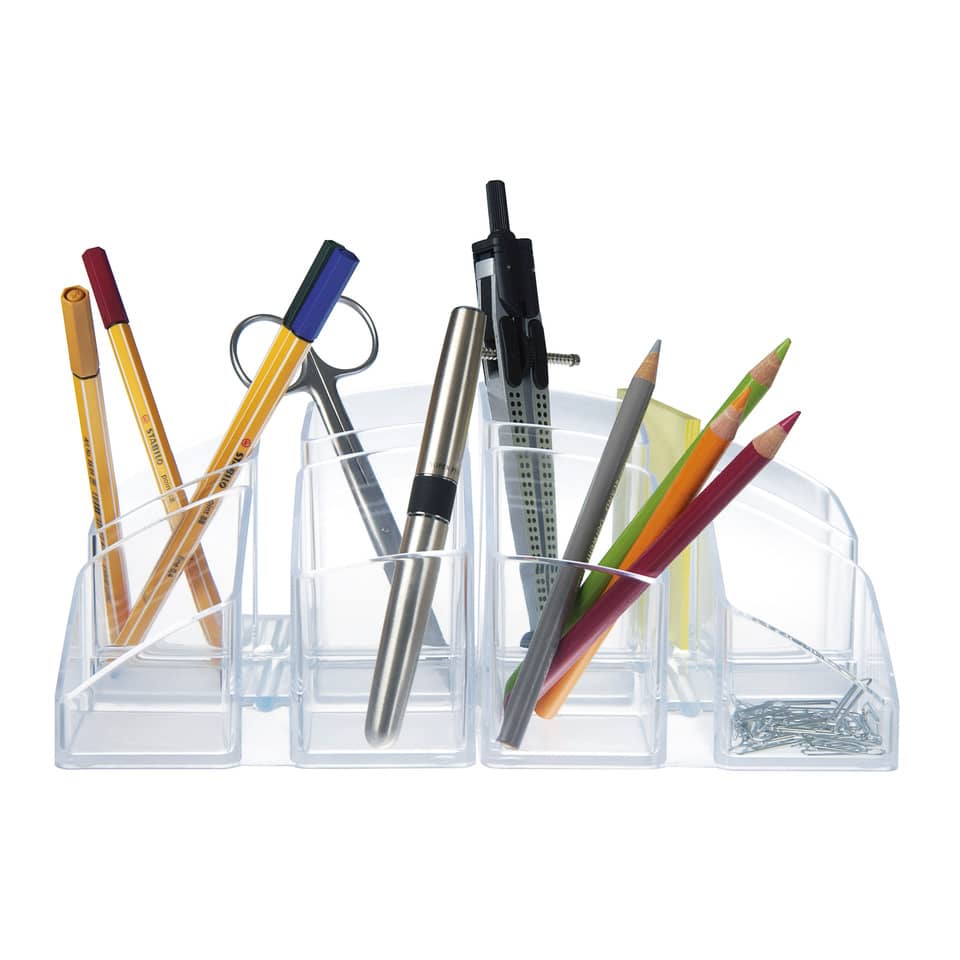 Eigenschaften "Schreibtischköcher SCALA, mit 4 Fächern und Kartenständer, transparent-glasklar HAN 17450-23"